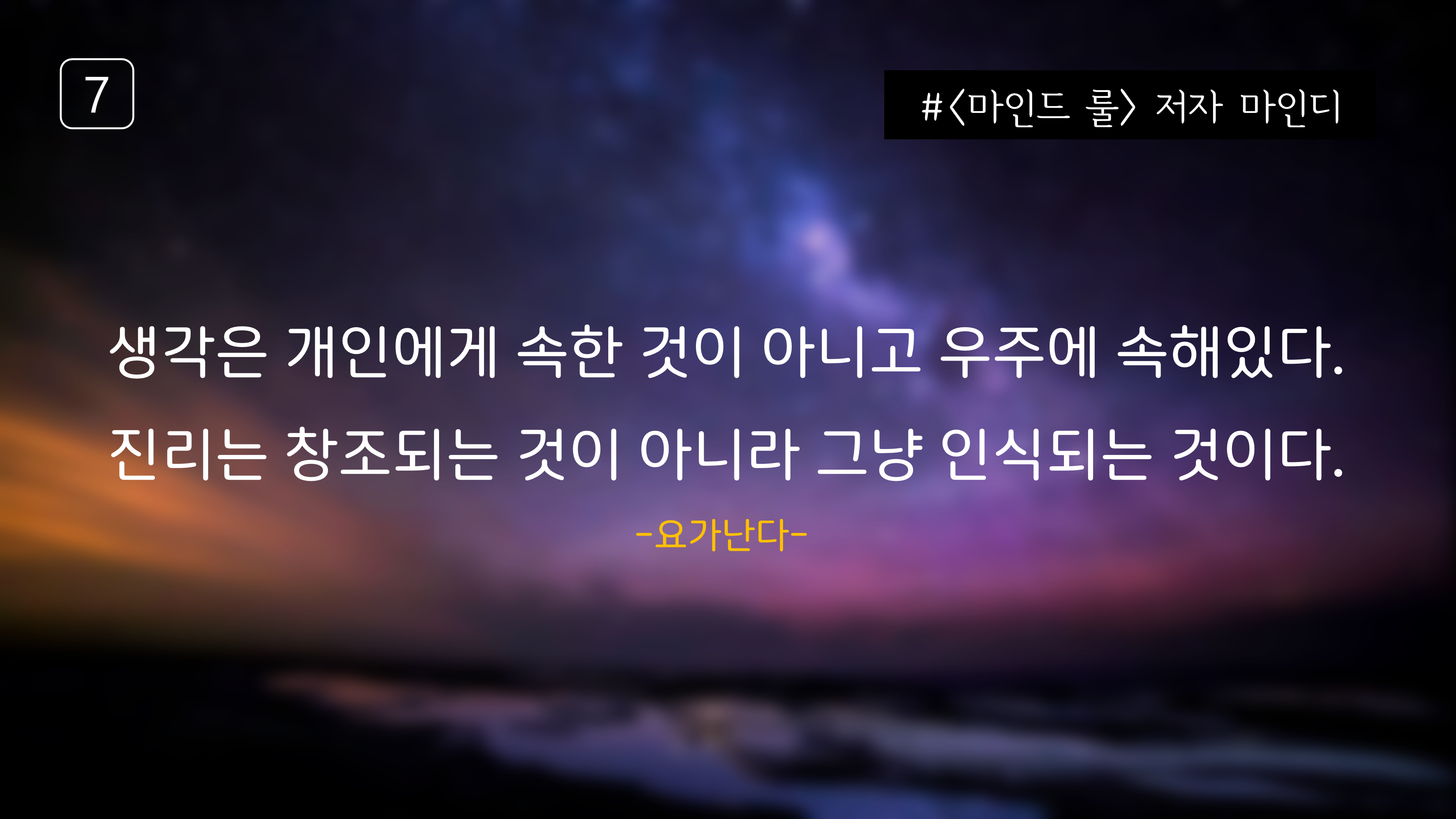 "생각은 개인에게 속한 것이 아니고 우주에 속해있다.