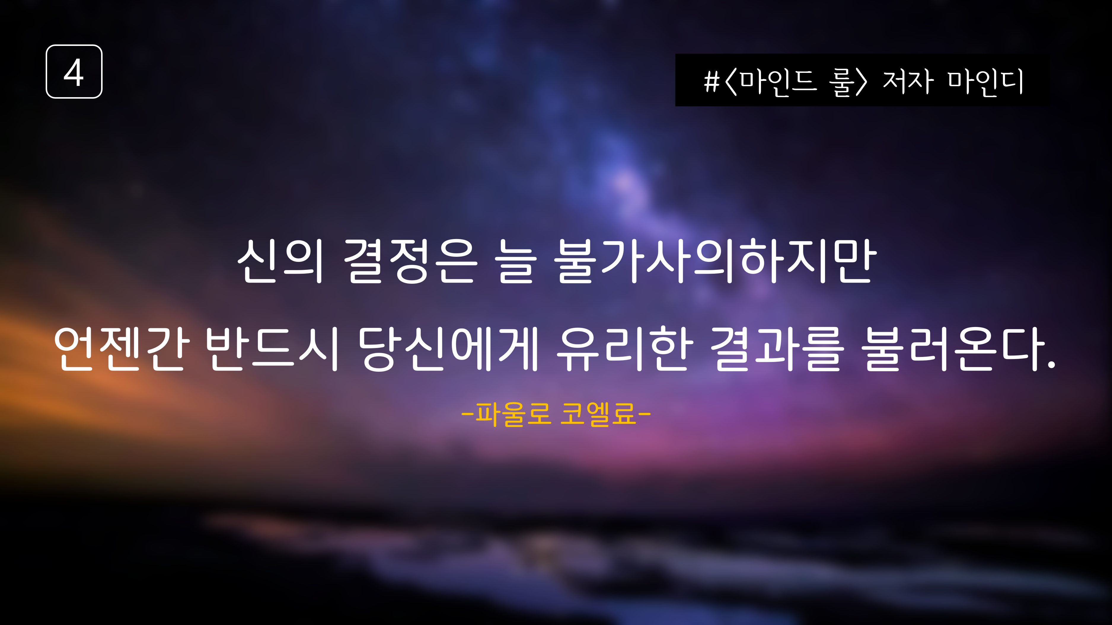 오늘은 이 책에 실린 주옥같은 명언들을 함께 살펴보는 시간을 갖도록 하겠습니다ㅎㅎ