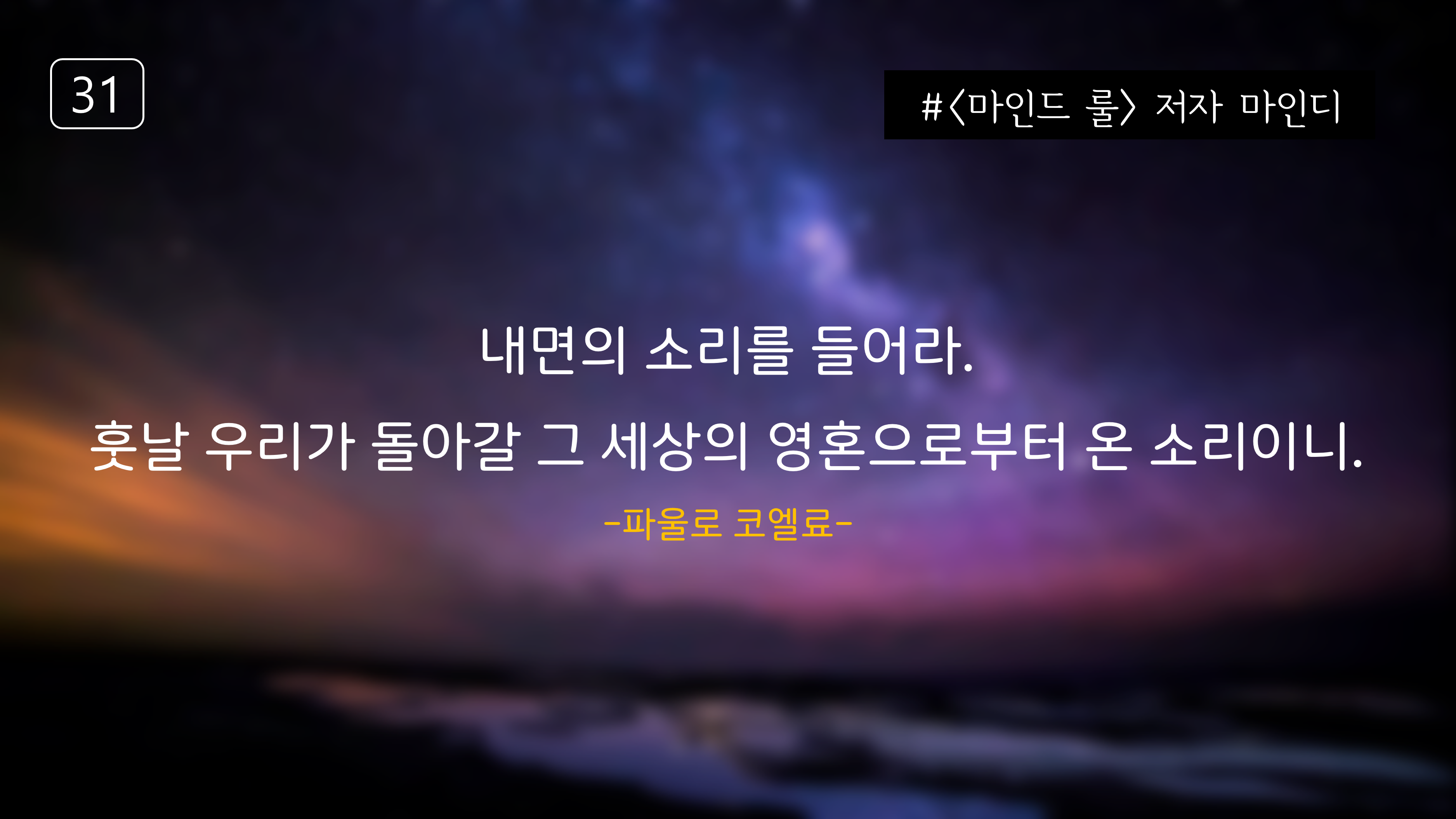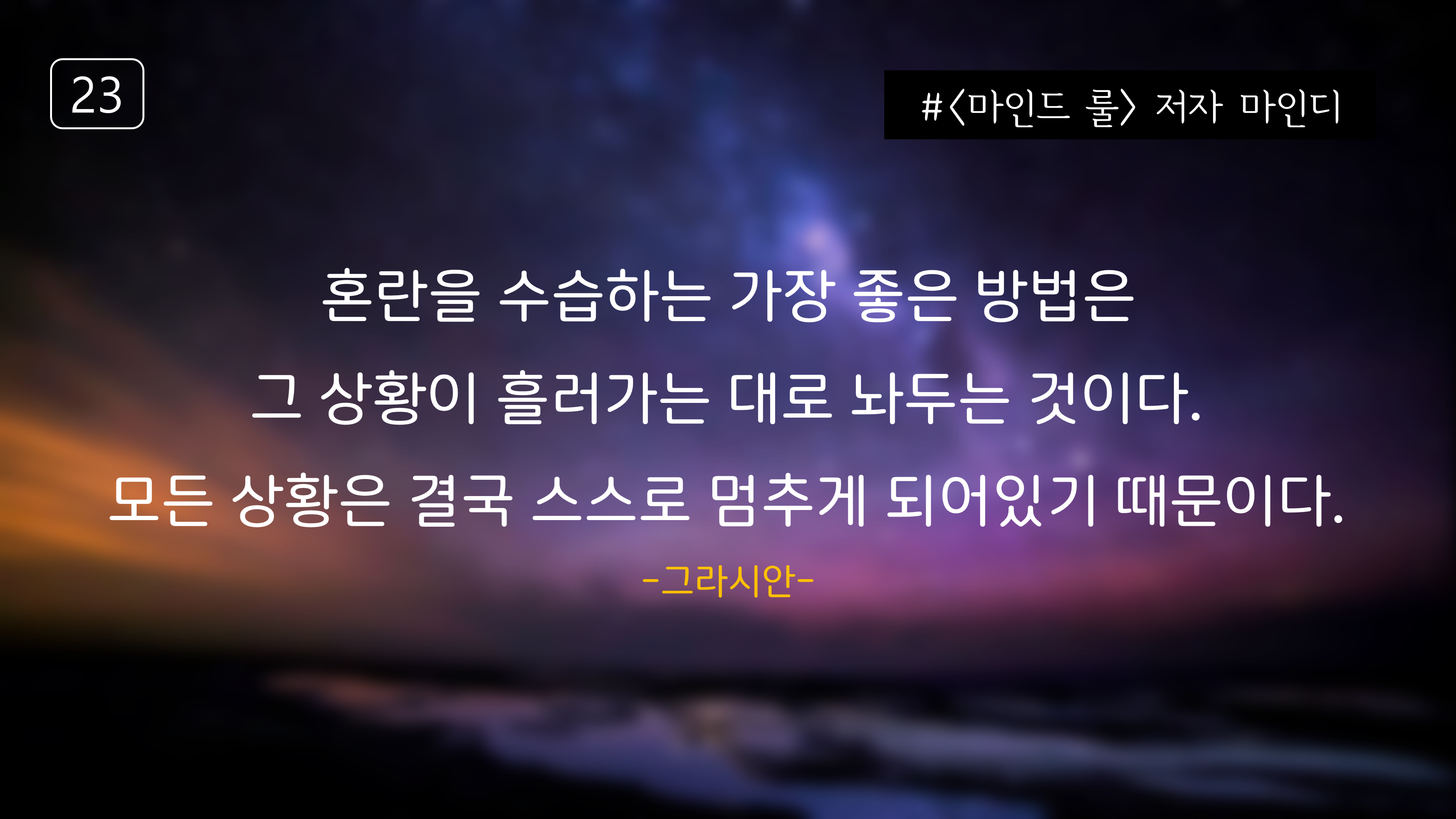 오늘은 <마인드 룰> 명언 소개 시리즈를 마무리하는 날인 만큼